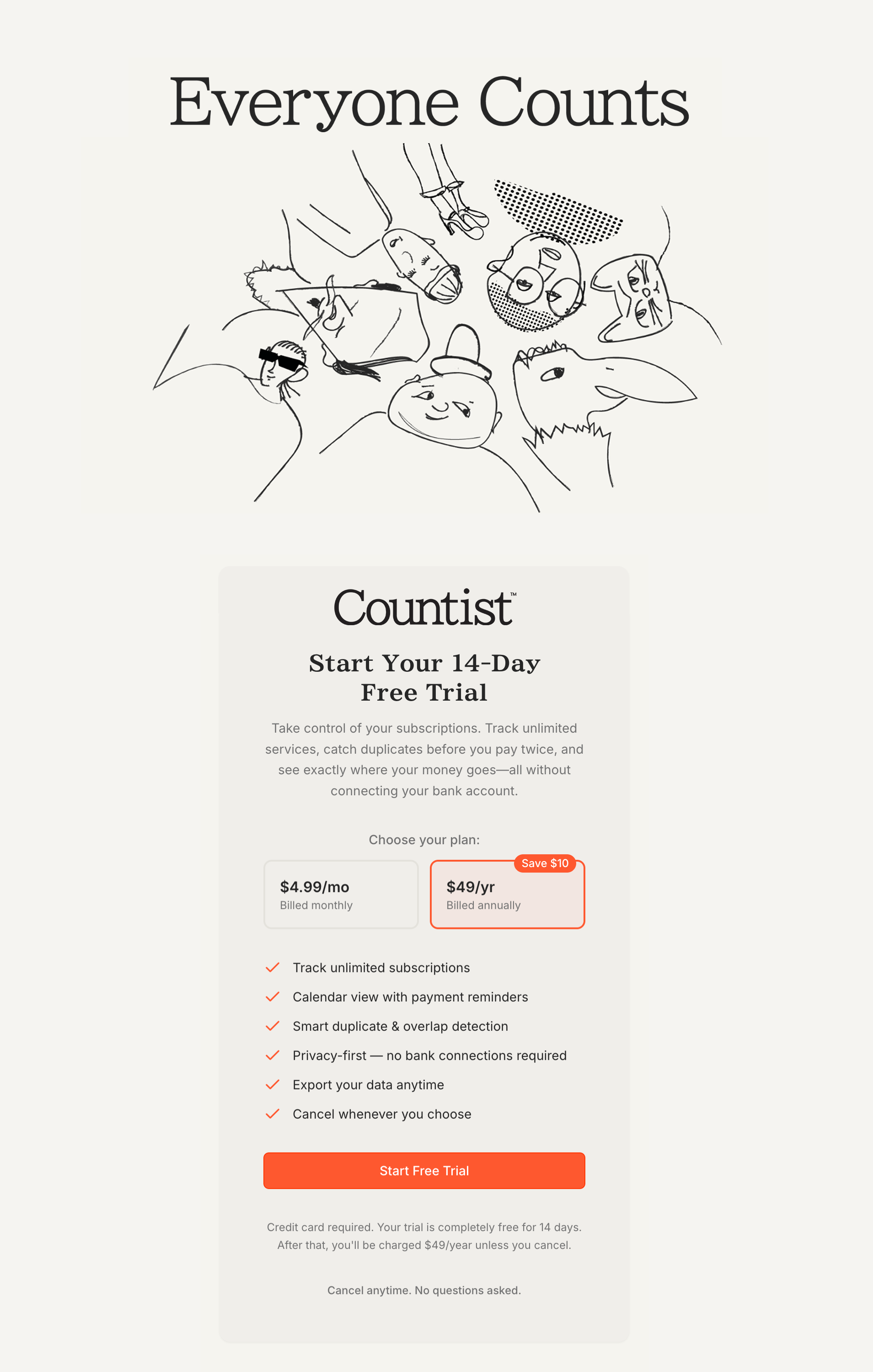Countist is a privacy-first subscription tracker that helps people see exactly what they are paying for without connecting a bank account.